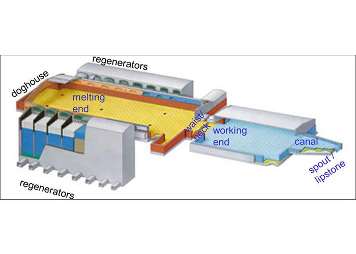 300TPD Çapraz Ateşlemeli Rejeneratif Fırın Büyük Cam Eritme Cihazı