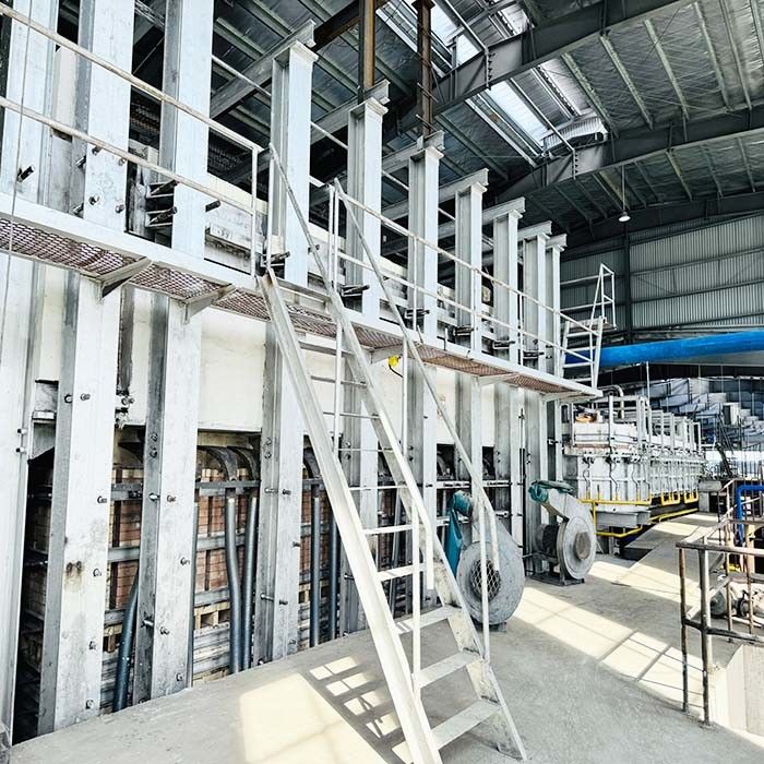 An End-Fired Furnace (is also called as End-Port Furnace or Horseshoe-Fired Furnace) is an industrial thermal processing unit where combustion burners are positioned at one or both ends of the furnace chamberYanmaktan kaynaklanan sıcak gaz akışı fırın yönü boyunca hareket eder.Uçsal olarak düzenlenmiş yanma portları ve U şeklindeki alev yolu ile tasarlanmış bir cam erime fırını ile ısı aktarımıSon ateşlenen fırının küçük bir alev kaplama alanı vardır, alev tersine dönmesi periyodik sıcaklık dalgalanması ve sıcak nokta hareketini getirir.